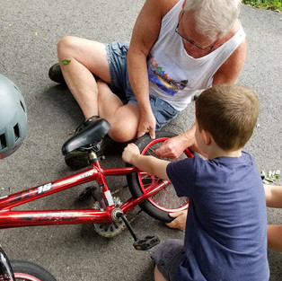 Line up all the bikes and tricycles, grab a bowl of soapy water and sponges, and work together to wash all the winter grime off of each family member's vehicle! We enlisted the help of a friendly neighbor to help fill our bike tires and my older son assisted his little brother with adjusting the handlebars on the balance bike to accommodate his new height. Tip: Coca-cola works wonders on any rust you might have on those bikes!